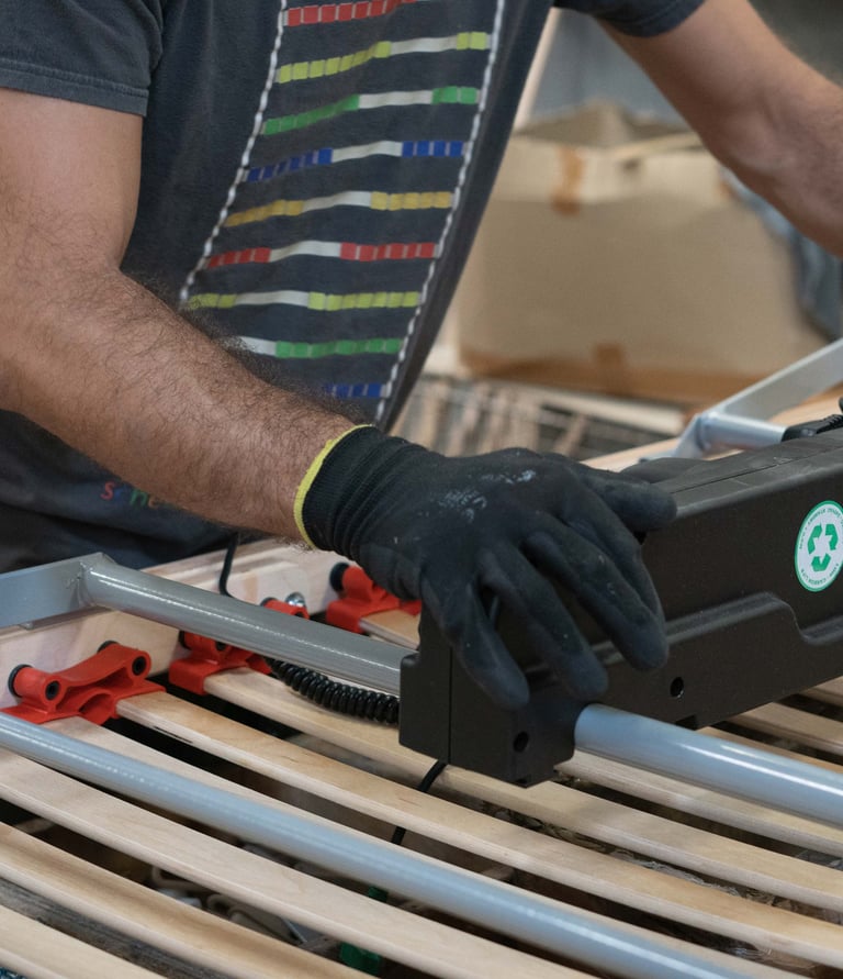 Nestled in Europe, our factory blends tradition with efficiency, crafting bed bases that sustain comfort and the planet.